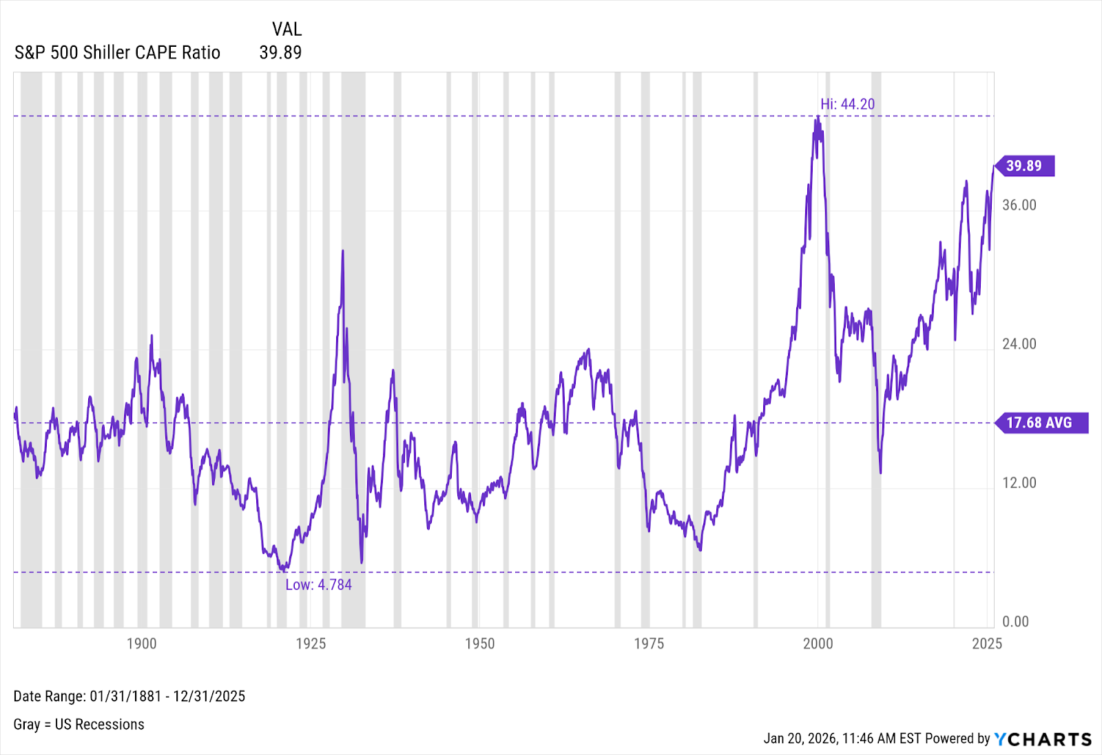 *We see the market through the lens of a late-stage economic cycle that has been extended by large fiscal deficits and enthusiasm about technology and productivity gain potential from artificial intelligence. Stock valuations at the index level are some of the most expensive in history. However, we do not invest solely on valuation – to do so would be to miss many excellent returns in the stock market since the Great Recession. But we are mindful that upside is limited and long-term returns will likely be mediocre if you simply invest simply in index funds (especially US large cap).